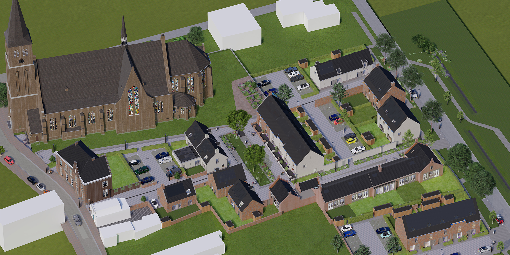 Binnenkort start de bouw van de 30 woningen van het plan Bernardushof, gelegen aan de voet van de Sint Laurentiuskerk in het centrum van Oud Gastel.