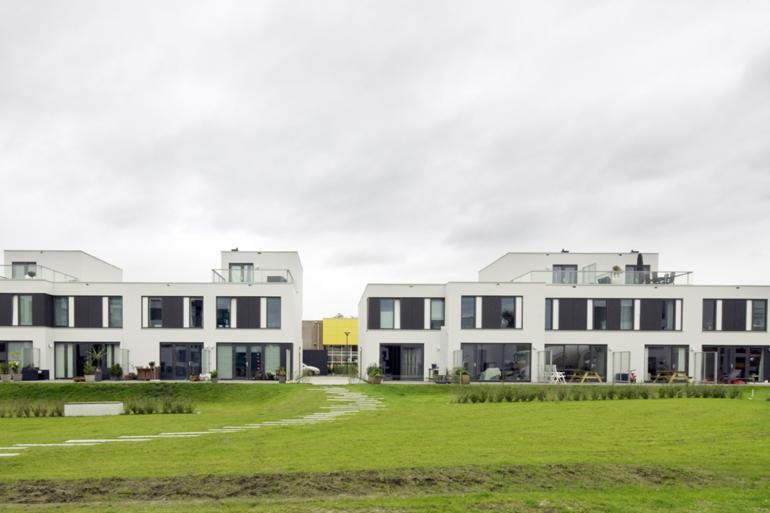 Onze trots is de kern van het huis. We hebben daar de gang weg laten vallen. De kern met daarin de trap en het toilet is omkleed met hout waarin schuifdeuren verdwijnen. Het is echt een eyecatcher geworden. Natuurlijk hadden we graag nog meer invloed op het hele plan gehad, maar dat heeft ook zijn eigen dynamiek. Als de huurappartementen hier tegenover niet gebouwd waren, had ons huis er ook niet gestaan. Dat begrijpen we ook. Bij het groen zijn we wel uitgebreid betrokken als bewoners. Niet alleen het contact met de landschapsarchitect was leuk, ook het feit dat je in het centrale park de medebewoners leert kennen. Het wordt een heel groen park met prachtige magnolia’s en zonder auto’s.