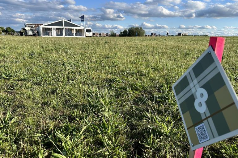 In het veld waren piketpaaltjes geplaatst, met daarop de bouwnummers zodat de aanwezigen de exacte ligging van hun toekomstige droomhuis kon bezoeken en via een QR-code kon men op Google Maps precies zien waar de diverse bouwnummers in het landschap gesitueerd zijn.