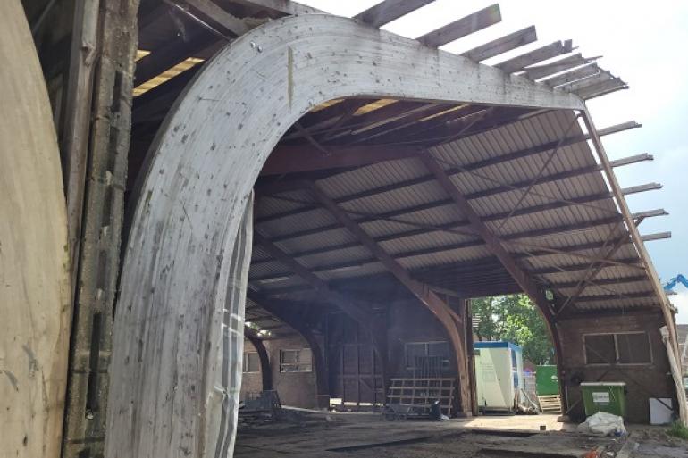 Er wordt nu eerst een bestaande hal gesloopt die plaatsmaakt voor de 7 hoek- en tussenwoningen en 2 tijdloze woningen. De verwachte oplevering van de woningen is in Q1 van 2025.