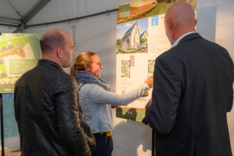 De bezoekers namen bij vertrek de verkoopdocumentatie in ontvangst, om de informatie thuis nog eens door te kunnen lezen en om een keuze te kunnen maken uit een van de bouwnummers.