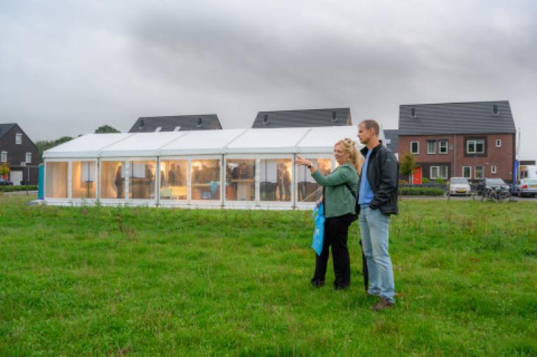 Veel enthousiaste en potentiële kopers bezochten de tent op de locatie (Kolkakkerlaan), alwaar de woningen overzichtelijk werden gepresenteerd. Onder het genot van een vers gemaakte kop koffie, werden zij uitgebreid geïnformeerd over de 29 hoogwaardige en duurzame vrijstaande- en twee-onder-één-kapwoningen.